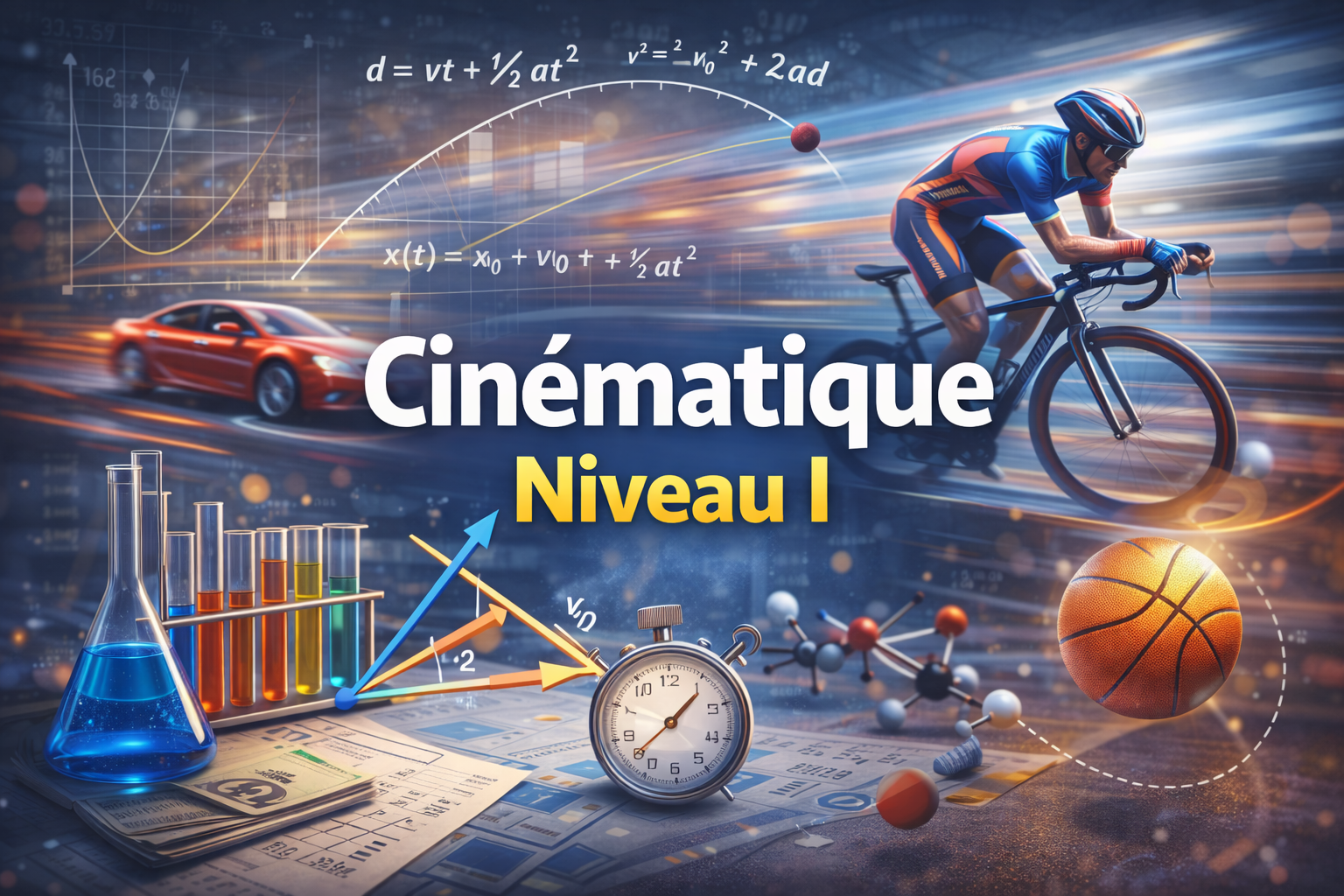 Ce cours propose une exploration progressive et structurée du mouvement des objets dans le monde physique, en introduisant les bases essentielles de la cinématique et les principes fondamentaux de la dynamique. Conçu pour des élèves de niveau secondaire (14–16 ans), il développe les compétences nécessaires pour comprendre, analyser et représenter le mouvement sous différentes formes.