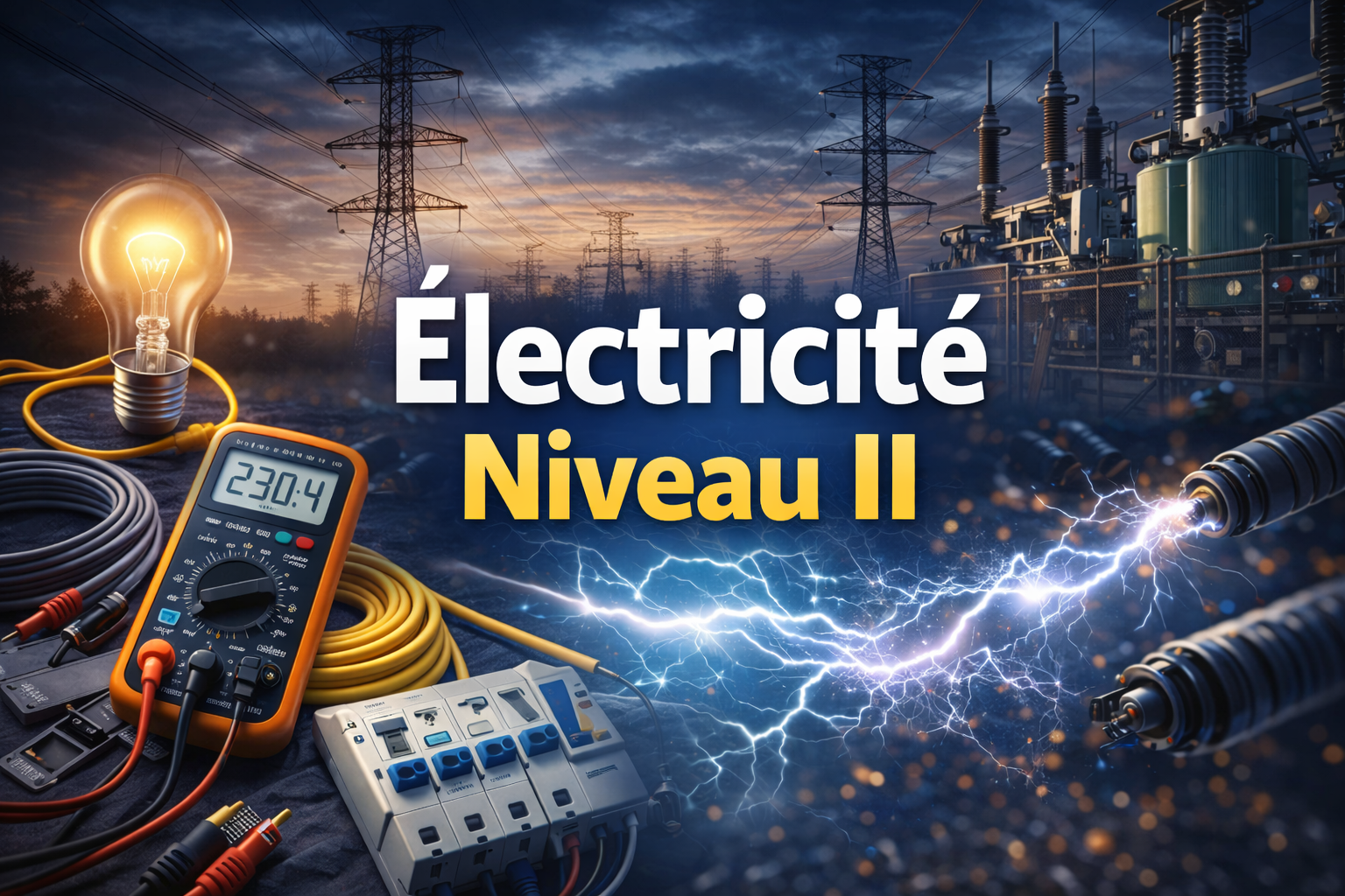 Ce cours offre une introduction complète aux notions essentielles de l’électricité : le courant électrique, la tension, la résistance, la puissance, l’énergie, l’électrolyse, les générateurs et les récepteurs.